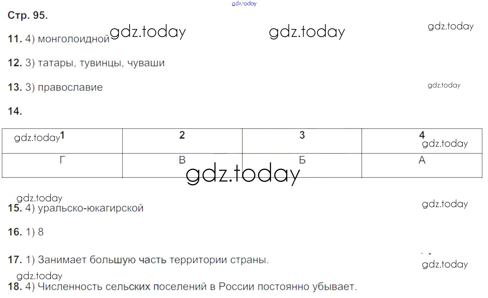 На страницах сайта gdz.today вы найдете учебный и вспомогательный материал, направленный на улучшения знаний школьной программы. ГДЗ - онлайн мир знаний Страницы (решение) 95 Тетради-тренажеру по Географии для 8 класса Ольховая, Банников Просвещение Сферы 2016