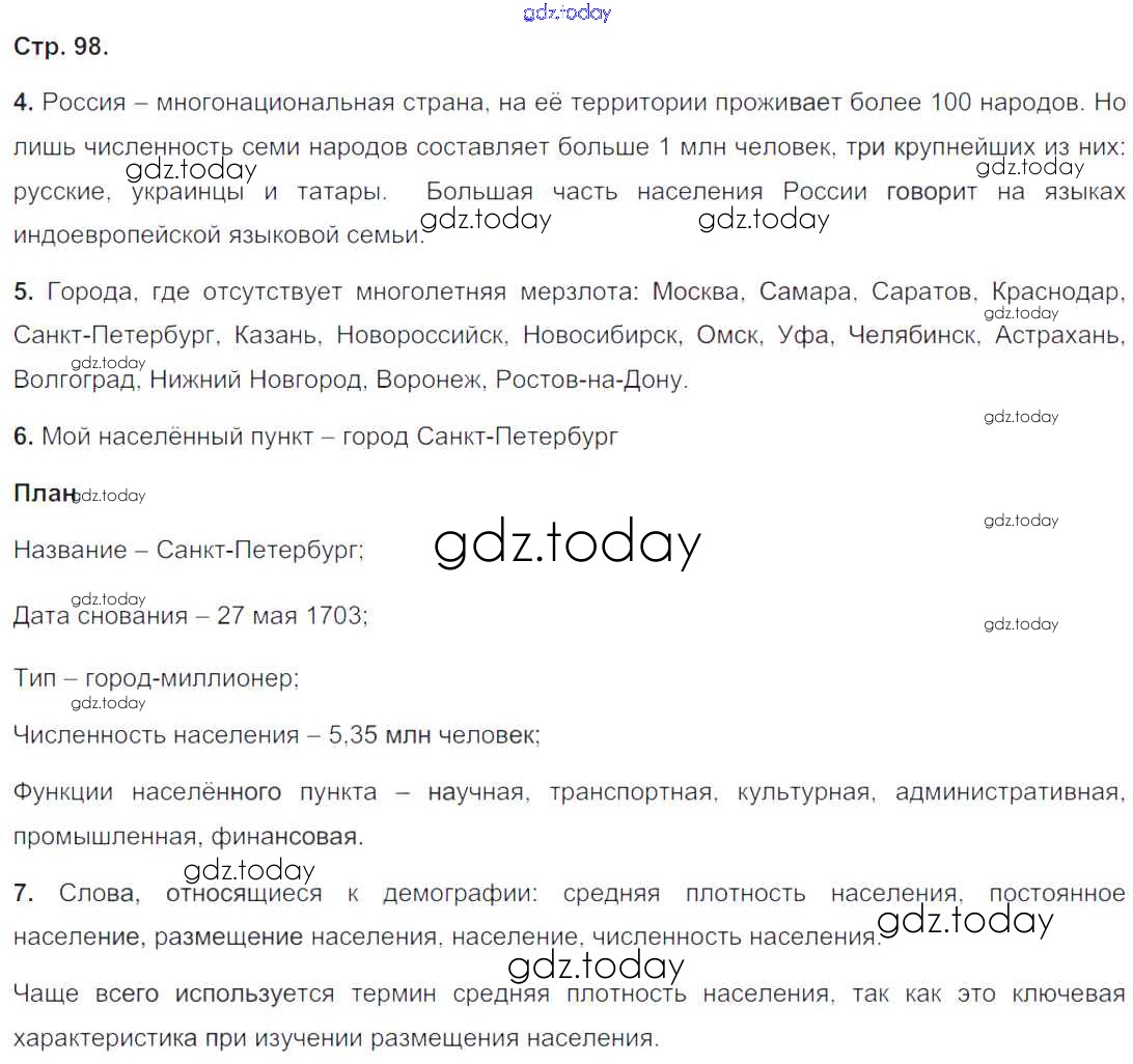 На страницах сайта gdz.today вы найдете учебный и вспомогательный материал, направленный на улучшения знаний школьной программы. ГДЗ - онлайн мир знаний Страницы (решение) 98 Тетради-тренажеру по Географии для 8 класса Ольховая, Банников Просвещение Сферы 2016