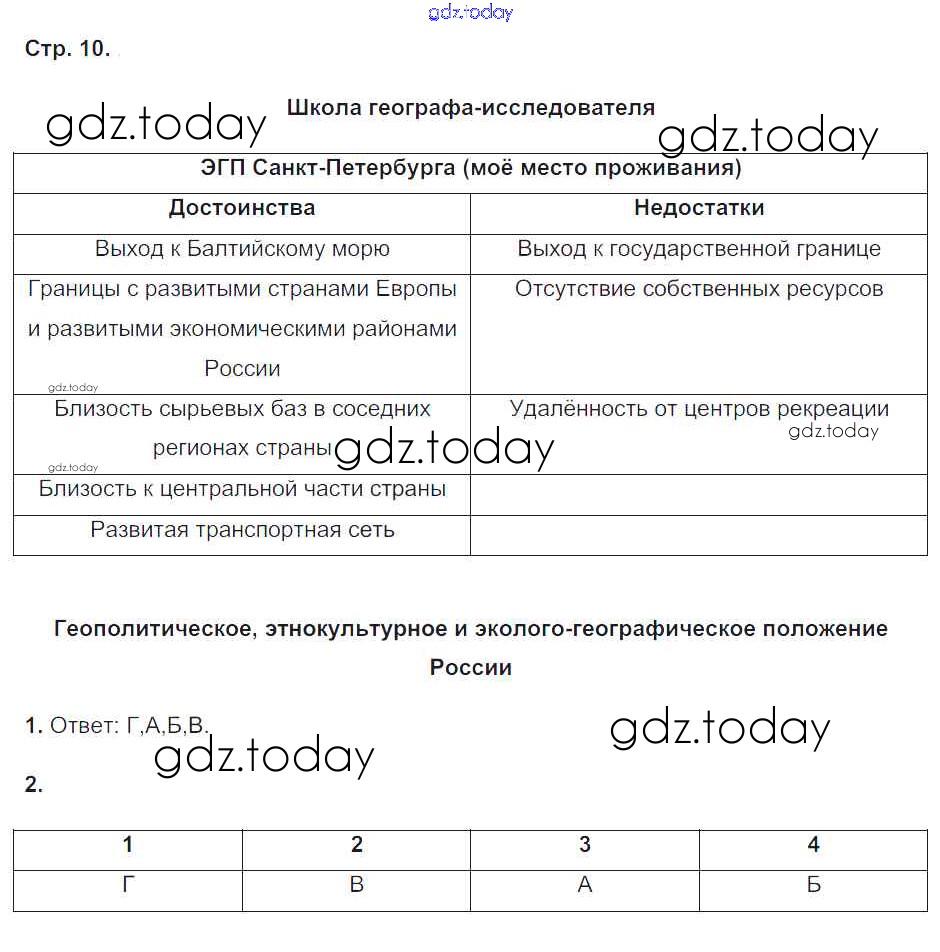 На страницах сайта gdz.today вы найдете учебный и вспомогательный материал, направленный на улучшения знаний школьной программы. ГДЗ - онлайн мир знаний Решение к части 1. Страницы 10 Рабочей тетради по Географии для 8 класса Пятунин, Таможняя Вентана-граф Алгоритм успеха 2017