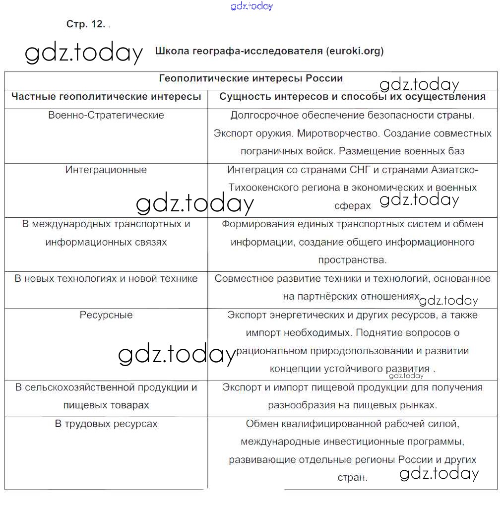 На страницах сайта gdz.today вы найдете учебный и вспомогательный материал, направленный на улучшения знаний школьной программы. ГДЗ - онлайн мир знаний Решение к части 1. Страницы 12 Рабочей тетради по Географии для 8 класса Пятунин, Таможняя Вентана-граф Алгоритм успеха 2017