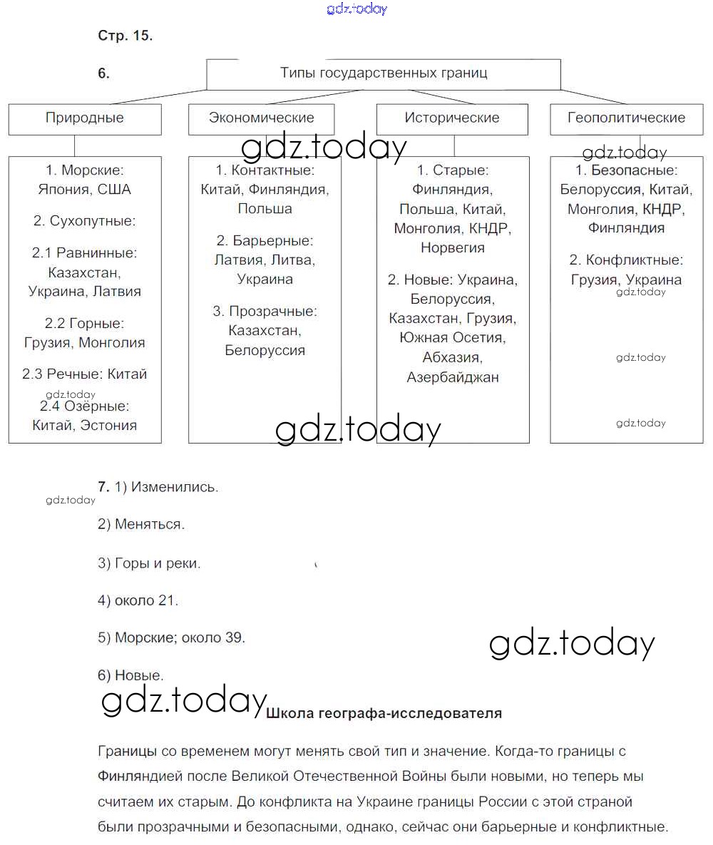 На страницах сайта gdz.today вы найдете учебный и вспомогательный материал, направленный на улучшения знаний школьной программы. ГДЗ - онлайн мир знаний Решение к части 1. Страницы 15 Рабочей тетради по Географии для 8 класса Пятунин, Таможняя Вентана-граф Алгоритм успеха 2017