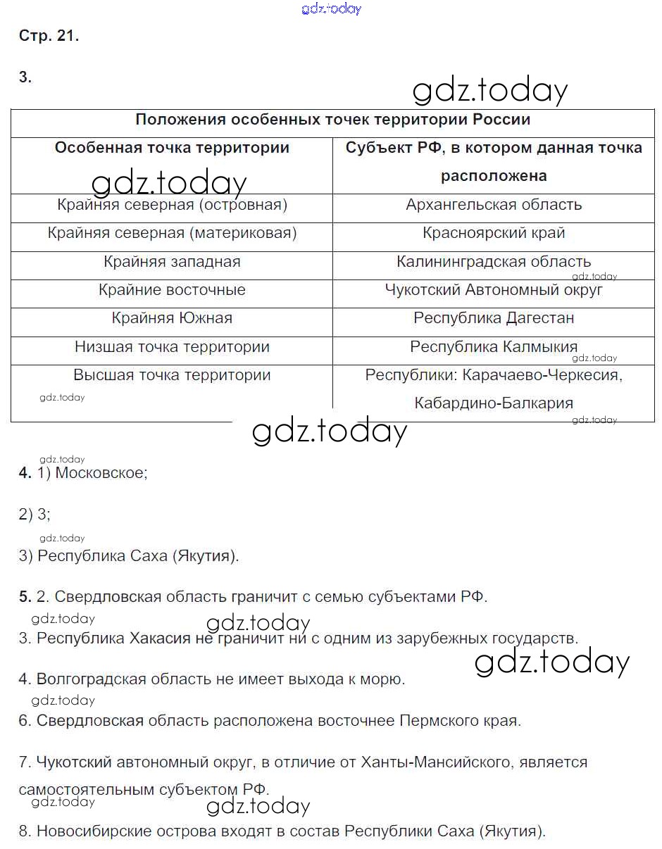 Ответы к Решение к части 1. Страницы 21 Рабочей тетради по Географии для 8 класса Пятунин, Таможняя Вентана-граф Алгоритм успеха 2017
