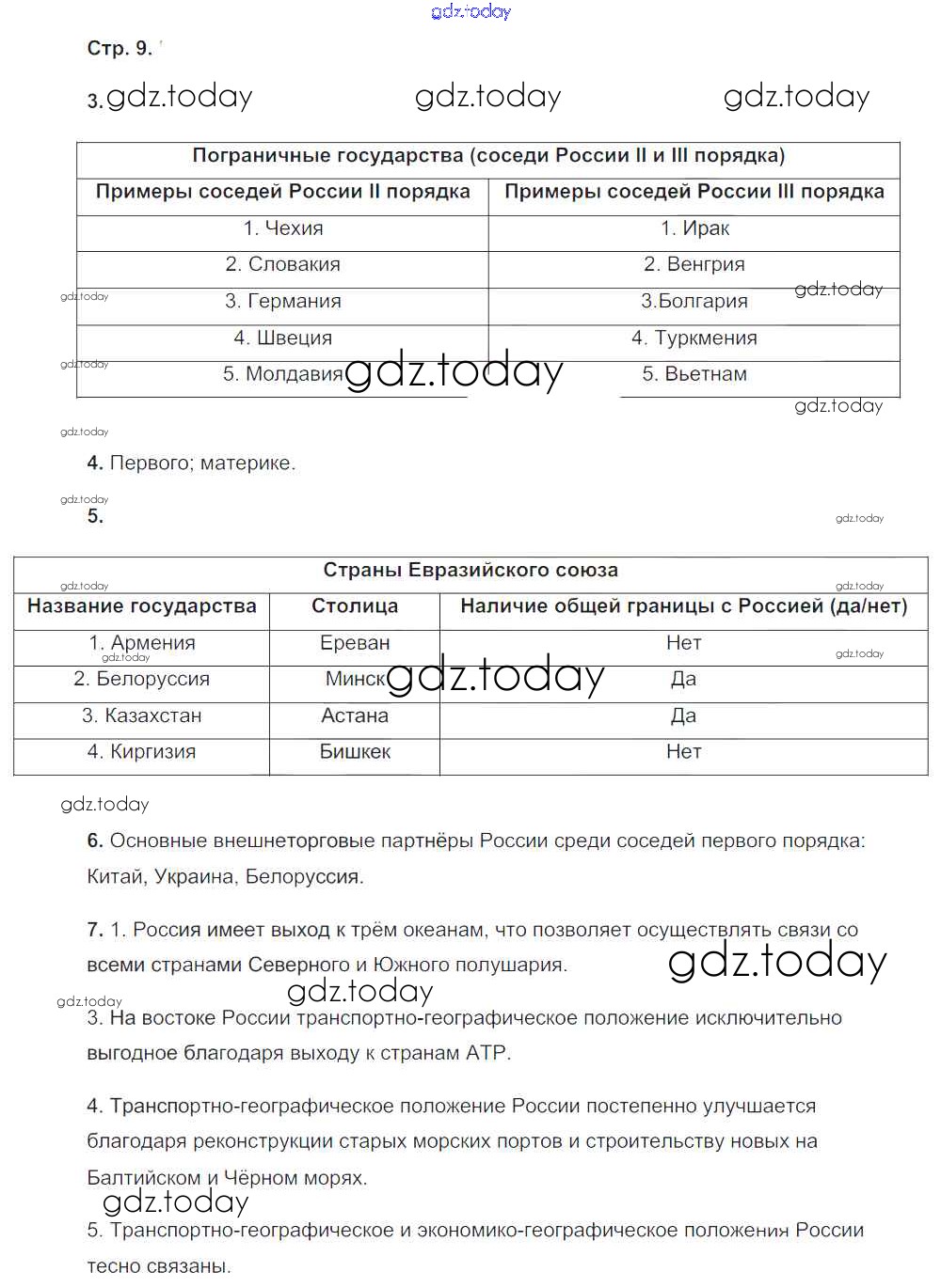 На страницах сайта gdz.today вы найдете учебный и вспомогательный материал, направленный на улучшения знаний школьной программы. ГДЗ - онлайн мир знаний Решение к части 1. Страницы 9 Рабочей тетради по Географии для 8 класса Пятунин, Таможняя Вентана-граф Алгоритм успеха 2017