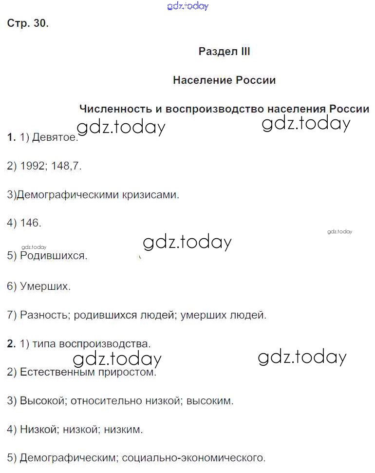 Ответы к Решение к части 2. Страницы 30 Рабочей тетради по Географии для 8 класса Пятунин, Таможняя Вентана-граф Алгоритм успеха 2017