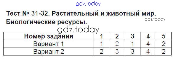 На страницах сайта gdz.today вы найдете учебный и вспомогательный материал, направленный на улучшения знаний школьной программы. ГДЗ - онлайн мир знаний Решение к тестам 31-32 Тестам по Географии для 8 класса Пятунина Экзамен УМК 2017