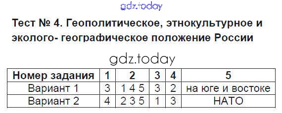 На страницах сайта gdz.today вы найдете учебный и вспомогательный материал, направленный на улучшения знаний школьной программы. ГДЗ - онлайн мир знаний Решение к тестам 4 Тестам по Географии для 8 класса Пятунина Экзамен УМК 2017