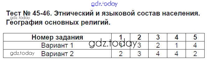 На страницах сайта gdz.today вы найдете учебный и вспомогательный материал, направленный на улучшения знаний школьной программы. ГДЗ - онлайн мир знаний Решение к тестам 45-46 Тестам по Географии для 8 класса Пятунина Экзамен УМК 2017