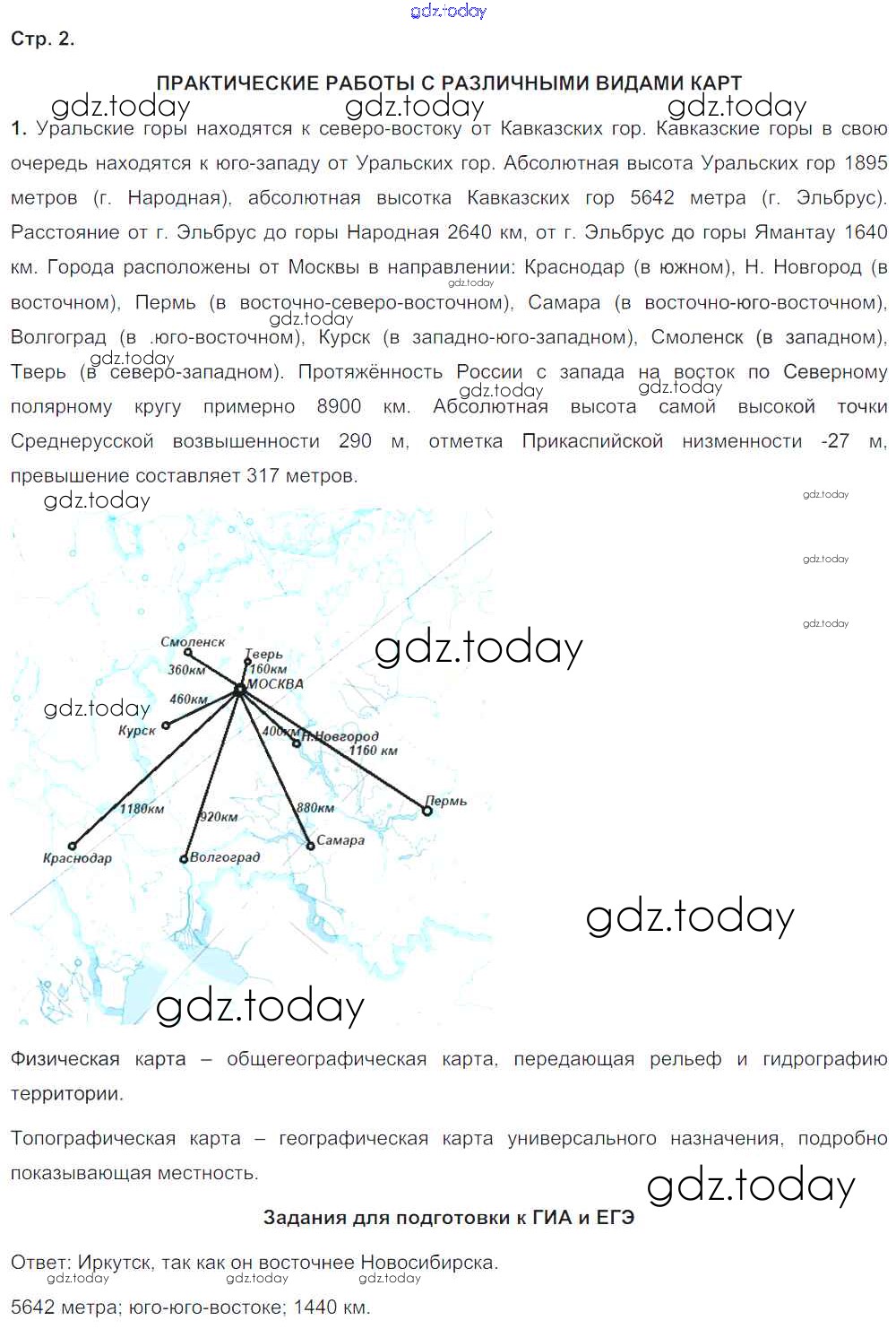 На страницах сайта gdz.today вы найдете учебный и вспомогательный материал, направленный на улучшения знаний школьной программы. ГДЗ - онлайн мир знаний Страницы (решение) 2 Рабочей тетради по Географии для 8 класса Сиротин Дрофа 2020