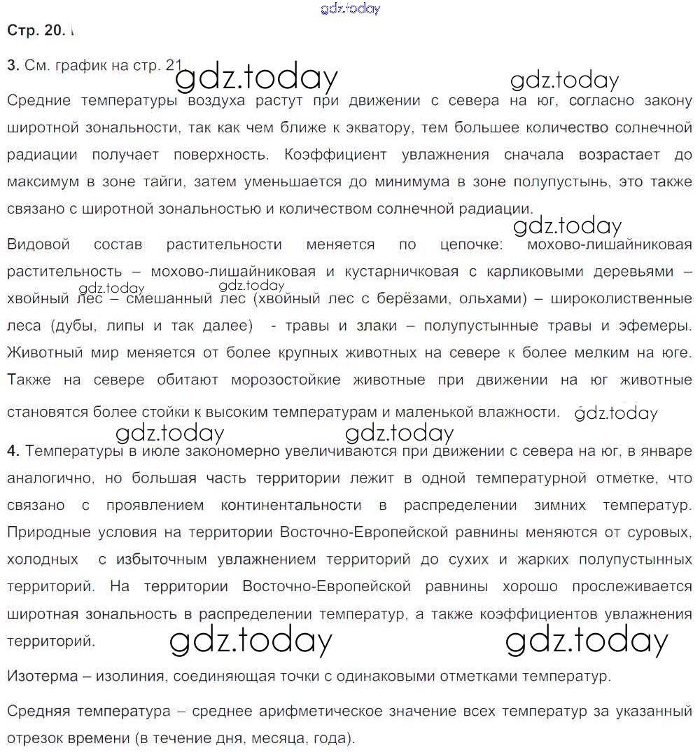 На страницах сайта gdz.today вы найдете учебный и вспомогательный материал, направленный на улучшения знаний школьной программы. ГДЗ - онлайн мир знаний Страницы (решение) 20 Рабочей тетради по Географии для 8 класса Сиротин Дрофа 2020