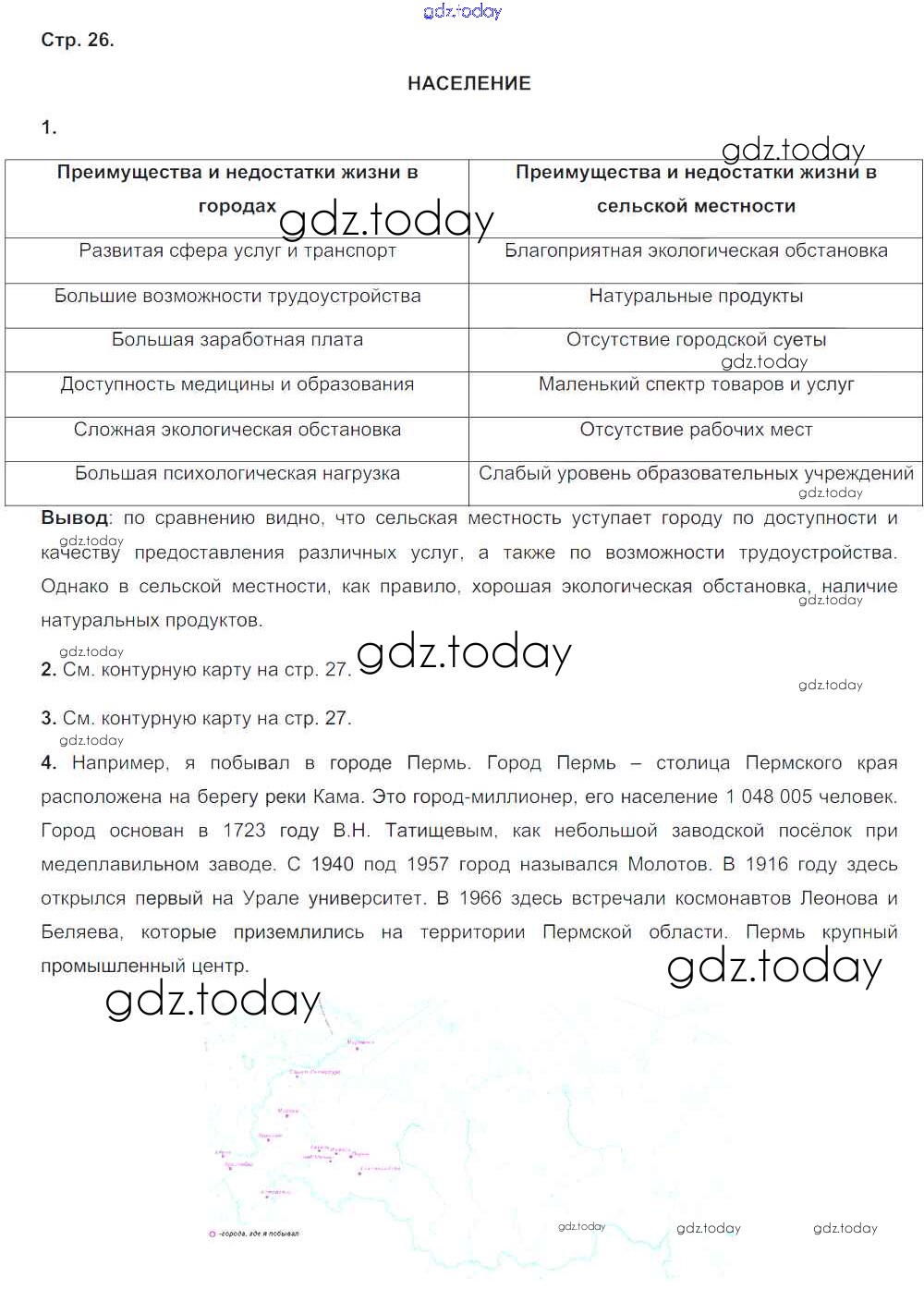 Ответы к Страницы (решение) 26 Рабочей тетради по Географии для 8 класса Сиротин Дрофа 2020
