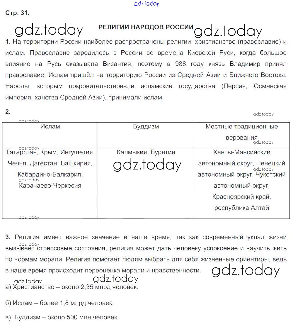 На страницах сайта gdz.today вы найдете учебный и вспомогательный материал, направленный на улучшения знаний школьной программы. ГДЗ - онлайн мир знаний Страницы (решение) 31 Рабочей тетради по Географии для 8 класса Сиротин Дрофа 2020