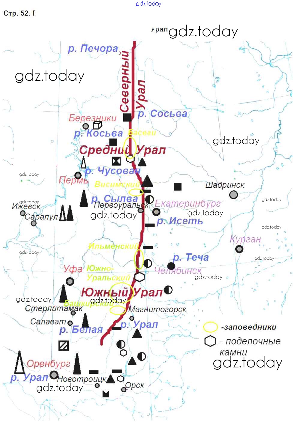 Ответы к Страницы (решение) 52 Рабочей тетради по Географии для 8 класса Сиротин Дрофа 2020