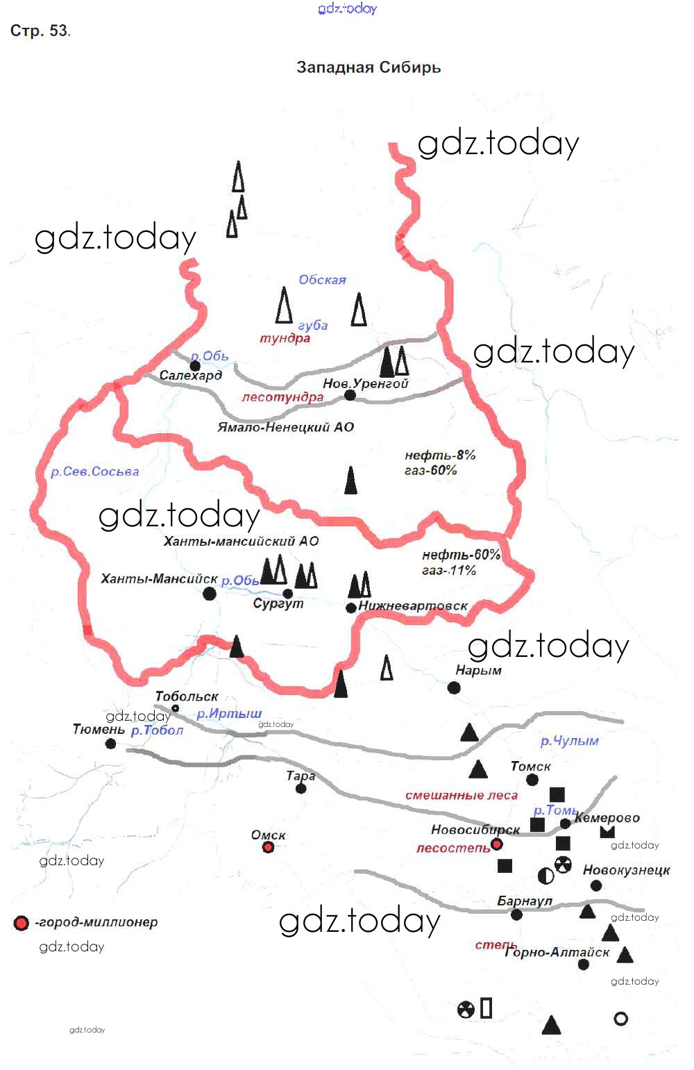 На страницах сайта gdz.today вы найдете учебный и вспомогательный материал, направленный на улучшения знаний школьной программы. ГДЗ - онлайн мир знаний Страницы (решение) 53 Рабочей тетради по Географии для 8 класса Сиротин Дрофа 2020