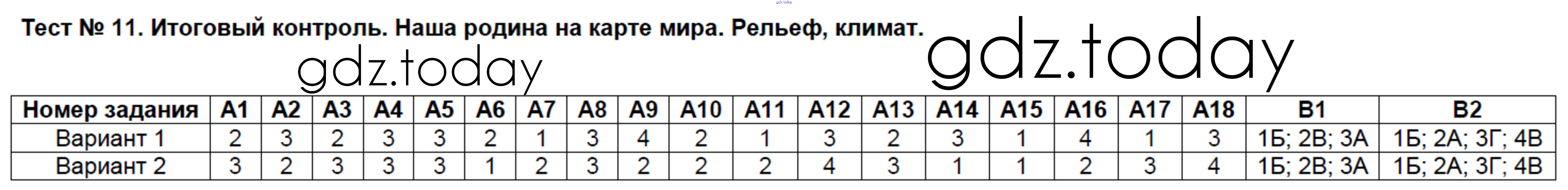 На страницах сайта gdz.today вы найдете учебный и вспомогательный материал, направленный на улучшения знаний школьной программы. ГДЗ - онлайн мир знаний Решение к тестам 11 Контрольно-измерительным материалам (КИМ) по Географии для 8 класса Жижина ВАКО 2018