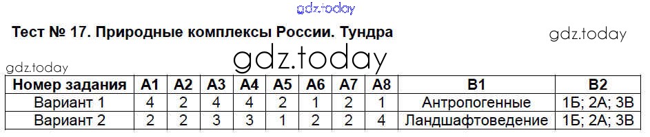 На страницах сайта gdz.today вы найдете учебный и вспомогательный материал, направленный на улучшения знаний школьной программы. ГДЗ - онлайн мир знаний Решение к тестам 17 Контрольно-измерительным материалам (КИМ) по Географии для 8 класса Жижина ВАКО 2018