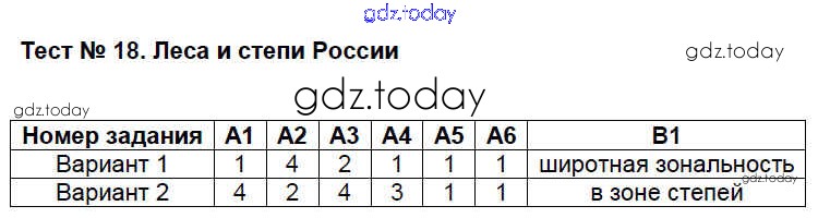 На страницах сайта gdz.today вы найдете учебный и вспомогательный материал, направленный на улучшения знаний школьной программы. ГДЗ - онлайн мир знаний Решение к тестам 18 Контрольно-измерительным материалам (КИМ) по Географии для 8 класса Жижина ВАКО 2018
