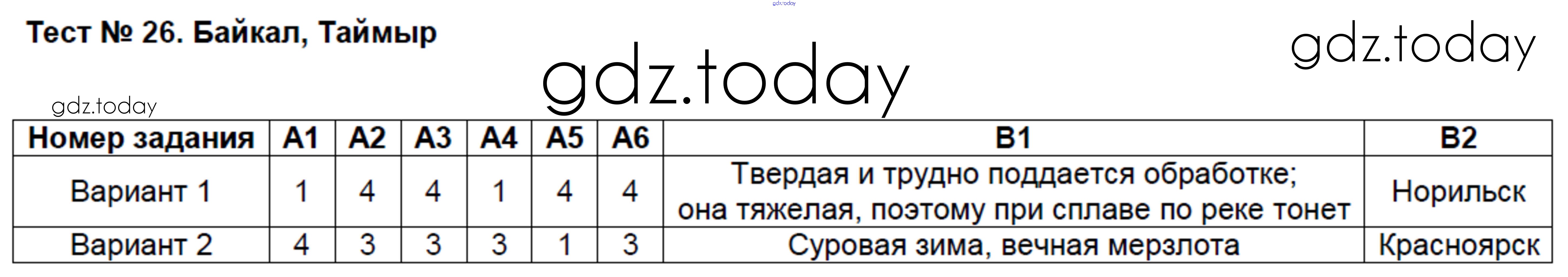 На страницах сайта gdz.today вы найдете учебный и вспомогательный материал, направленный на улучшения знаний школьной программы. ГДЗ - онлайн мир знаний Решение к тестам 26 Контрольно-измерительным материалам (КИМ) по Географии для 8 класса Жижина ВАКО 2018