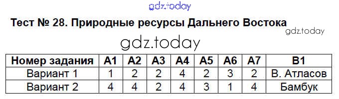 На страницах сайта gdz.today вы найдете учебный и вспомогательный материал, направленный на улучшения знаний школьной программы. ГДЗ - онлайн мир знаний Решение к тестам 28 Контрольно-измерительным материалам (КИМ) по Географии для 8 класса Жижина ВАКО 2018