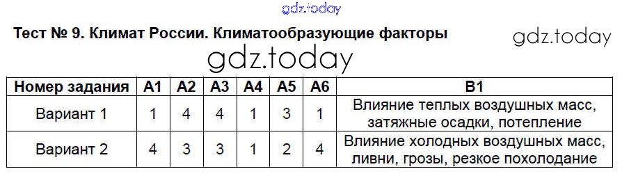 На страницах сайта gdz.today вы найдете учебный и вспомогательный материал, направленный на улучшения знаний школьной программы. ГДЗ - онлайн мир знаний Решение к тестам 9 Контрольно-измерительным материалам (КИМ) по Географии для 8 класса Жижина ВАКО 2018
