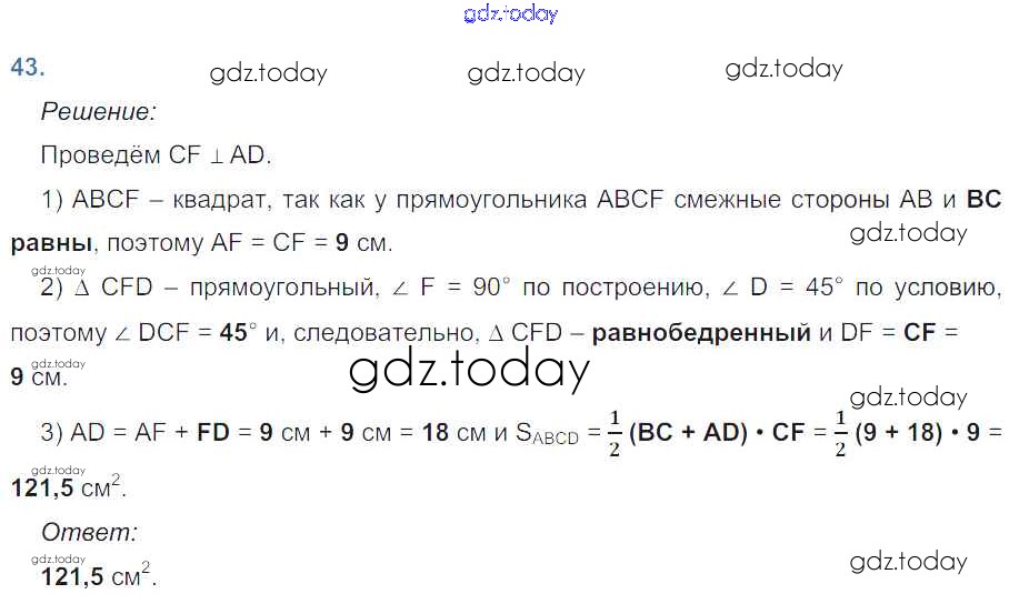 Ответы к Решение. Задачи 43 Рабочей тетради по Геометрии для 8 класса Атанасян, Бутузов Просвещение 2019