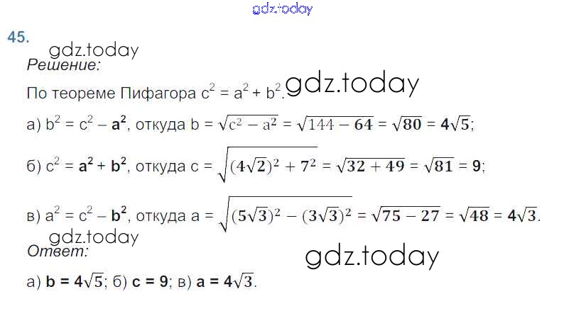 Ответы к Решение. Задачи 45 Рабочей тетради по Геометрии для 8 класса Атанасян, Бутузов Просвещение 2019
