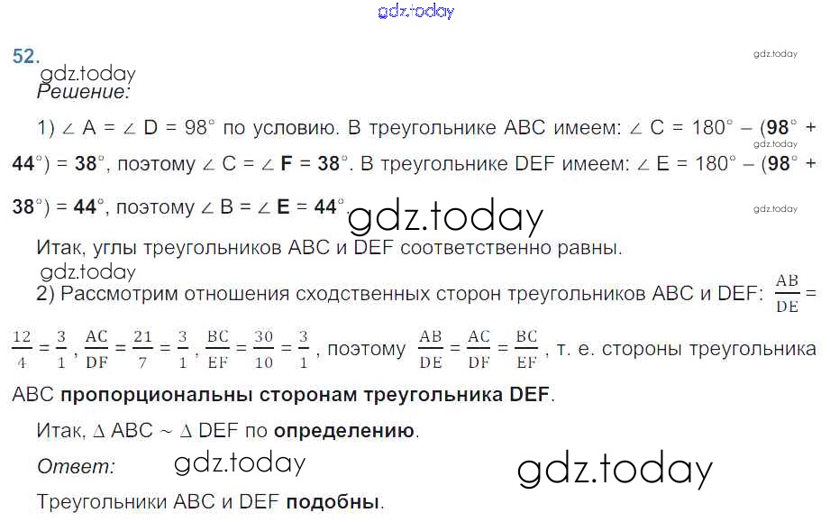 Ответы к Решение. Задачи 52 Рабочей тетради по Геометрии для 8 класса Атанасян, Бутузов Просвещение 2019