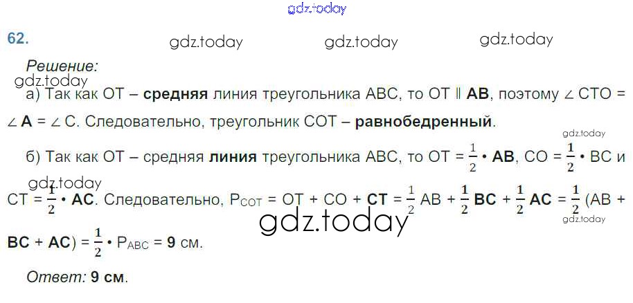 Ответы к Решение. Задачи 62 Рабочей тетради по Геометрии для 8 класса Атанасян, Бутузов Просвещение 2019