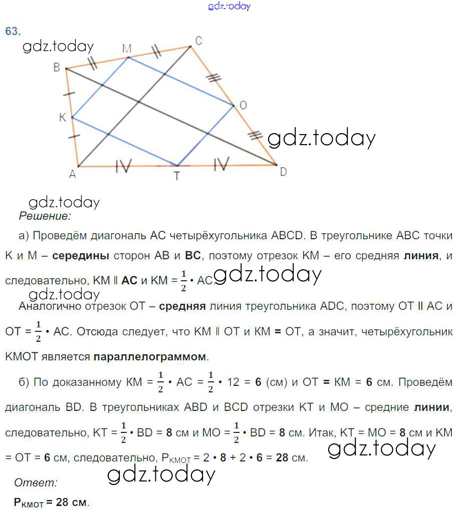 Ответы к Решение. Задачи 63 Рабочей тетради по Геометрии для 8 класса Атанасян, Бутузов Просвещение 2019