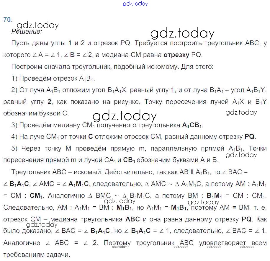 Ответы к Решение. Задачи 70 Рабочей тетради по Геометрии для 8 класса Атанасян, Бутузов Просвещение 2019