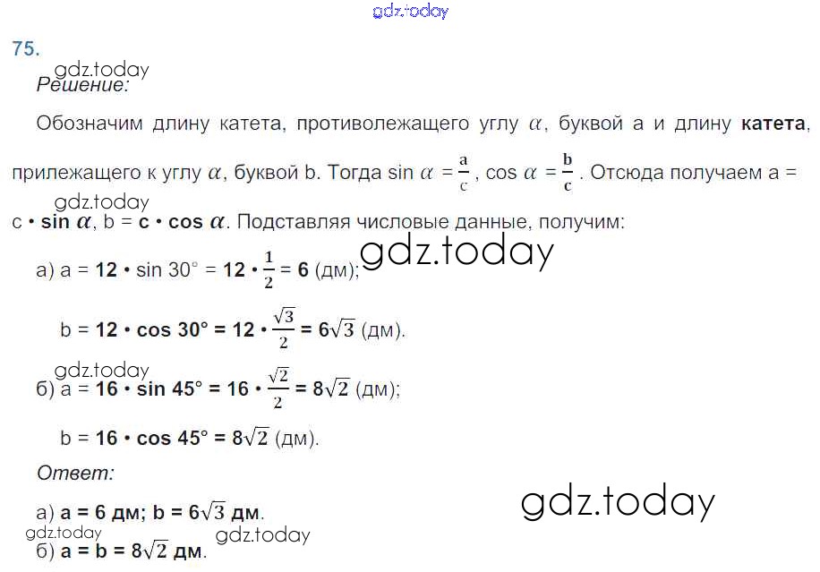 Ответы к Решение. Задачи 75 Рабочей тетради по Геометрии для 8 класса Атанасян, Бутузов Просвещение 2019