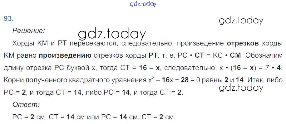 Ответы к Решение. Задачи 93 Рабочей тетради по Геометрии для 8 класса Атанасян, Бутузов Просвещение 2019