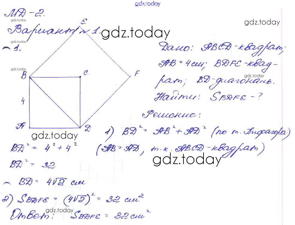 На страницах сайта gdz.today вы найдете учебный и вспомогательный материал, направленный на улучшения знаний школьной программы. ГДЗ - онлайн мир знаний Вариант №1 МД №2 1 Дидактическим материалам по Геометрии для 8 класса Зив, Мейлер Просвещение 2016