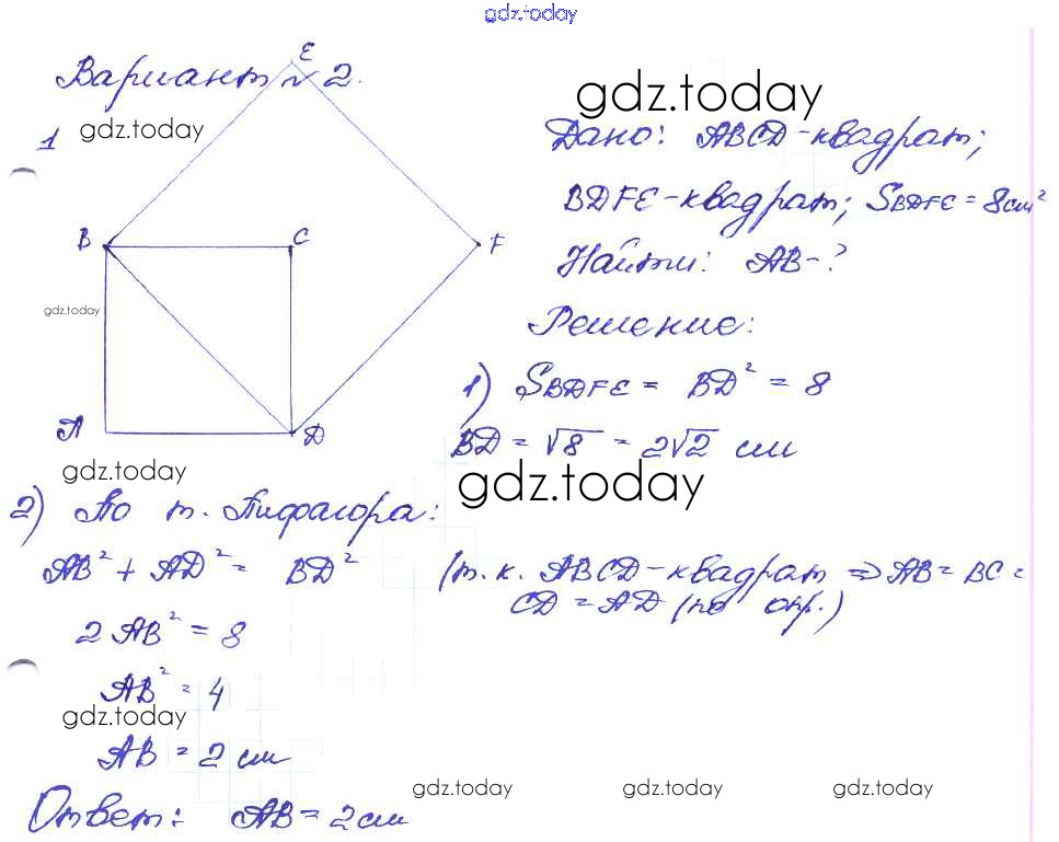На страницах сайта gdz.today вы найдете учебный и вспомогательный материал, направленный на улучшения знаний школьной программы. ГДЗ - онлайн мир знаний Вариант №2 МД №2 1 Дидактическим материалам по Геометрии для 8 класса Зив, Мейлер Просвещение 2016
