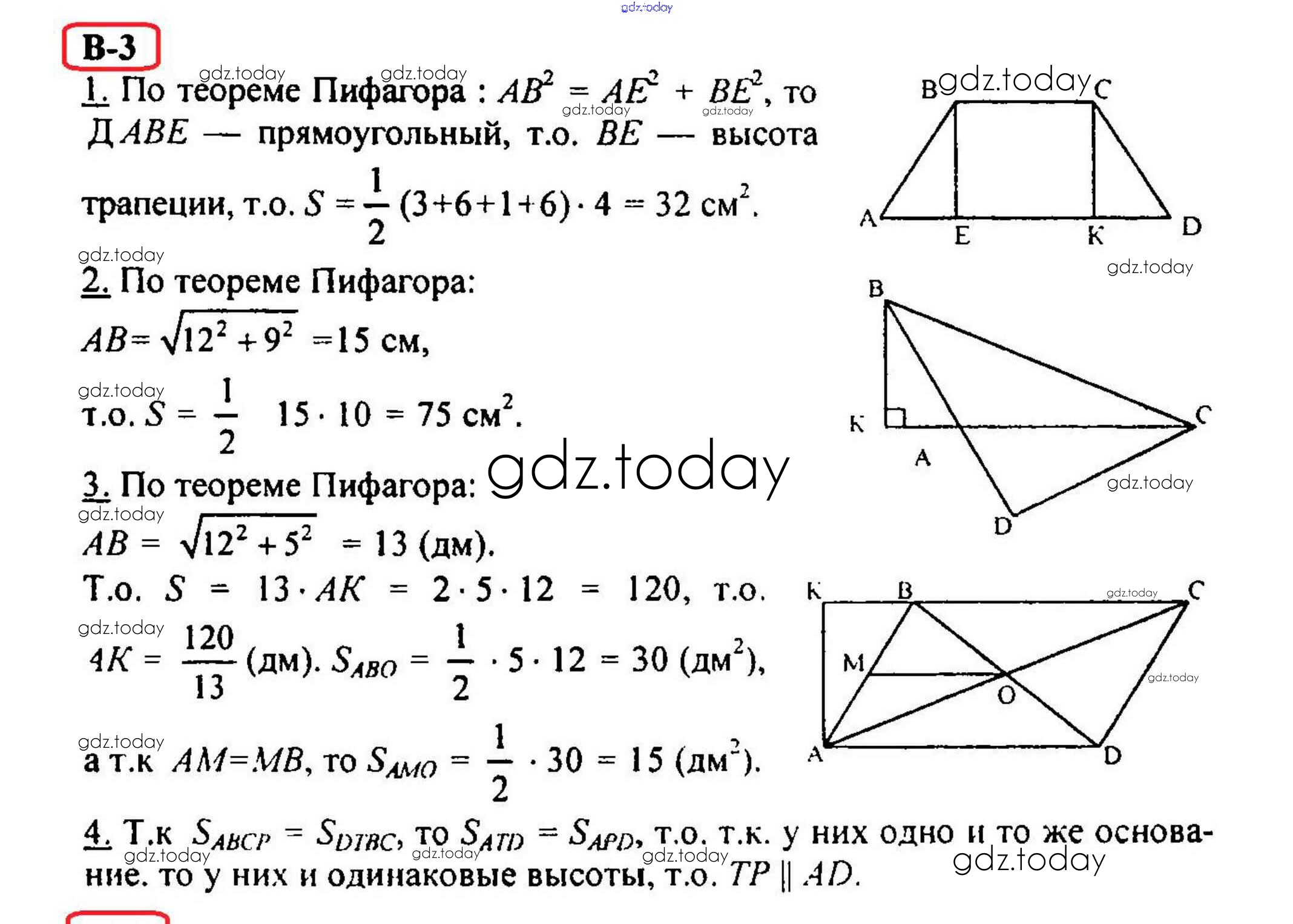 Ответы к КР-2 Решение к контрольным работам Вариант 3 Дидактическим материалам по Геометрии для 8 класса Зив, Мейлер Просвещение 2016