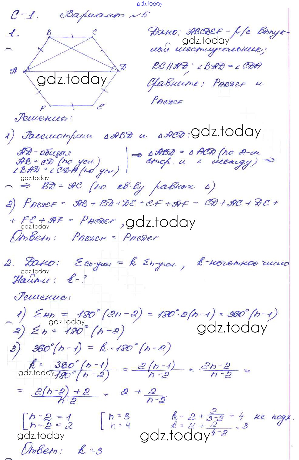 Ответы к СР №1. Многоугольник, четырехугольник Решение к самостоятельным работам вариант-5 Дидактическим материалам по Геометрии для 8 класса Зив, Мейлер Просвещение 2016