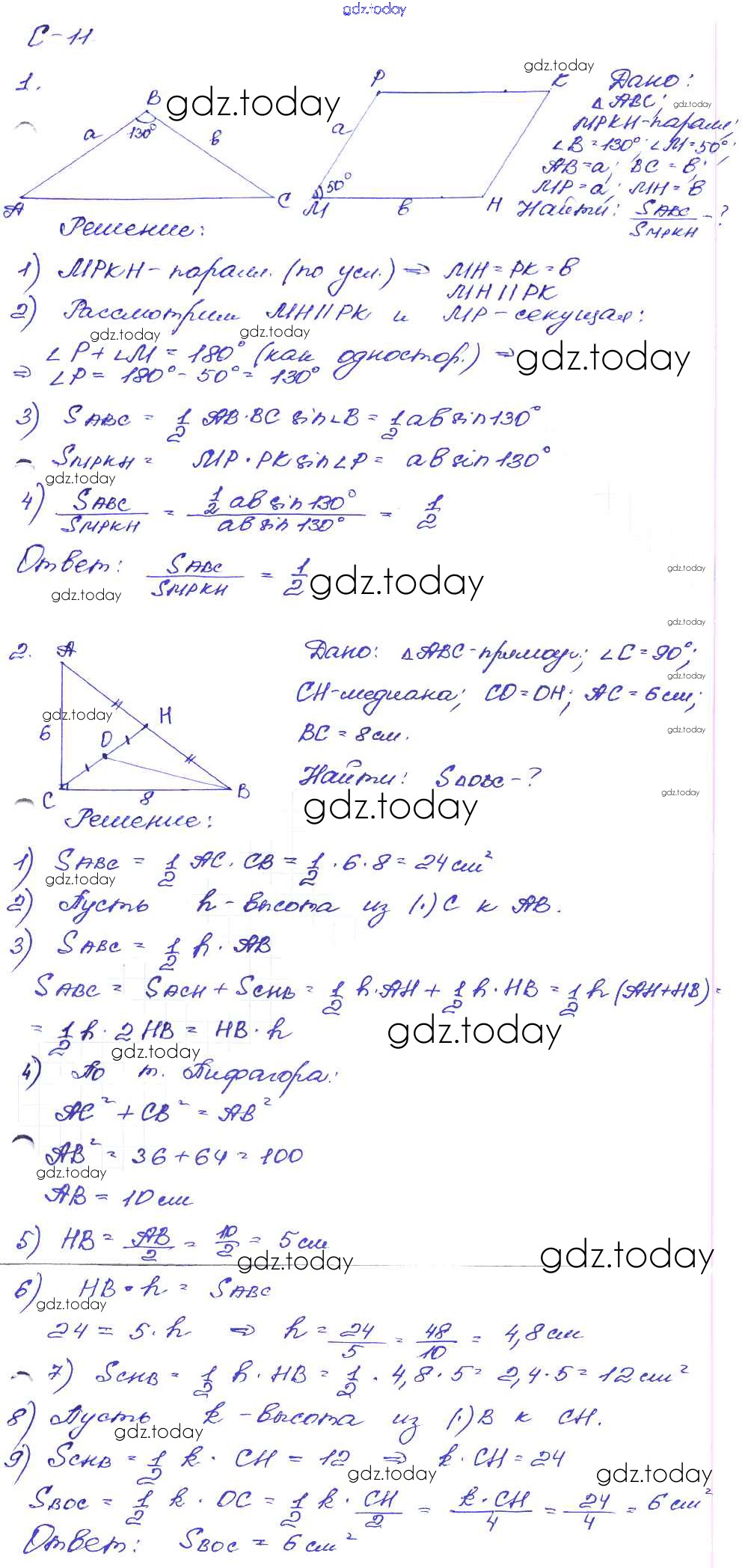 Ответы к СР №11. Площадь треугольника Решение к самостоятельным работам вариант-3 Дидактическим материалам по Геометрии для 8 класса Зив, Мейлер Просвещение 2016