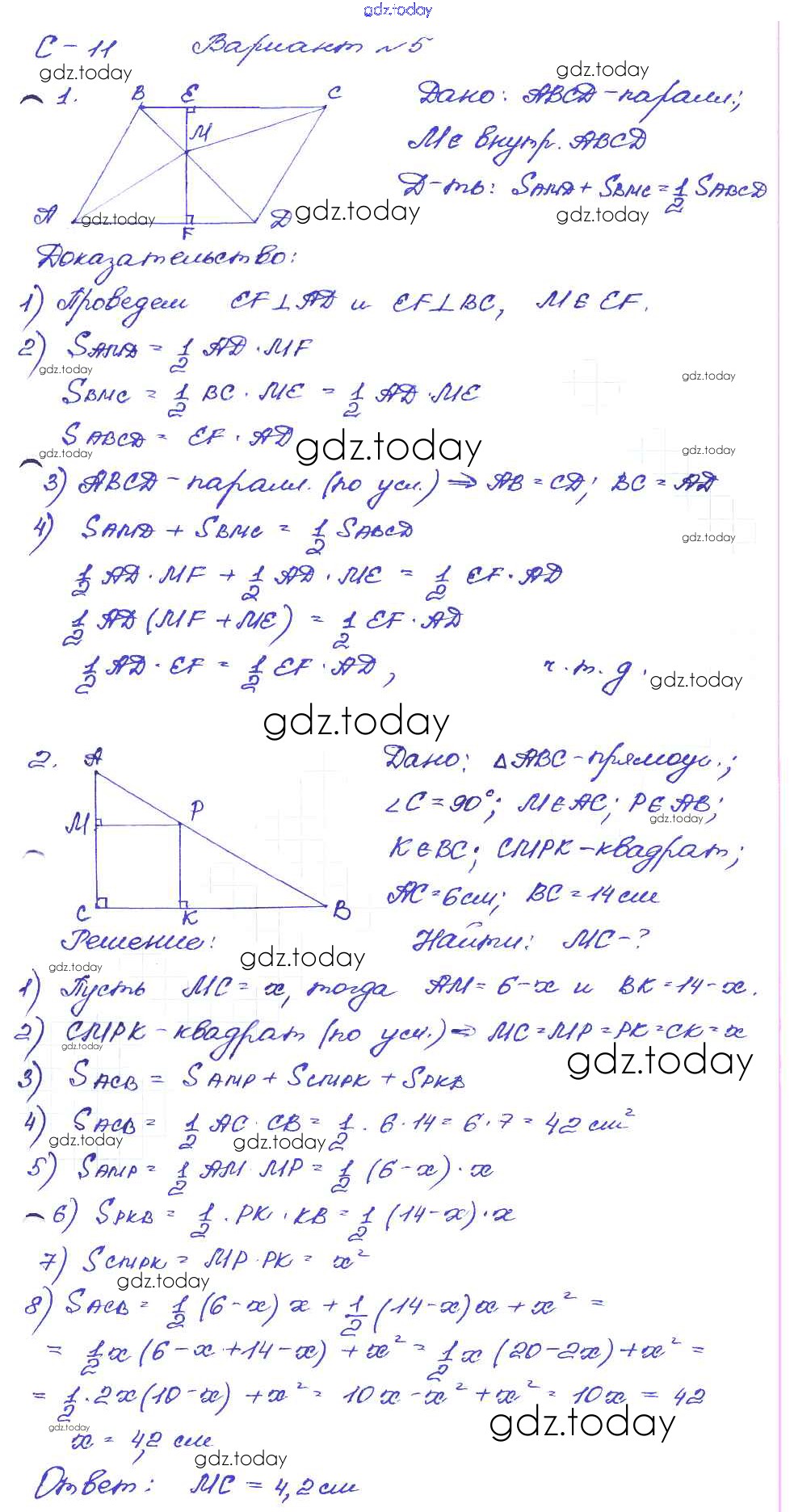 На страницах сайта gdz.today вы найдете учебный и вспомогательный материал, направленный на улучшения знаний школьной программы. ГДЗ - онлайн мир знаний СР №11. Площадь треугольника Решение к самостоятельным работам вариант-5 Дидактическим материалам по Геометрии для 8 класса Зив, Мейлер Просвещение 2016
