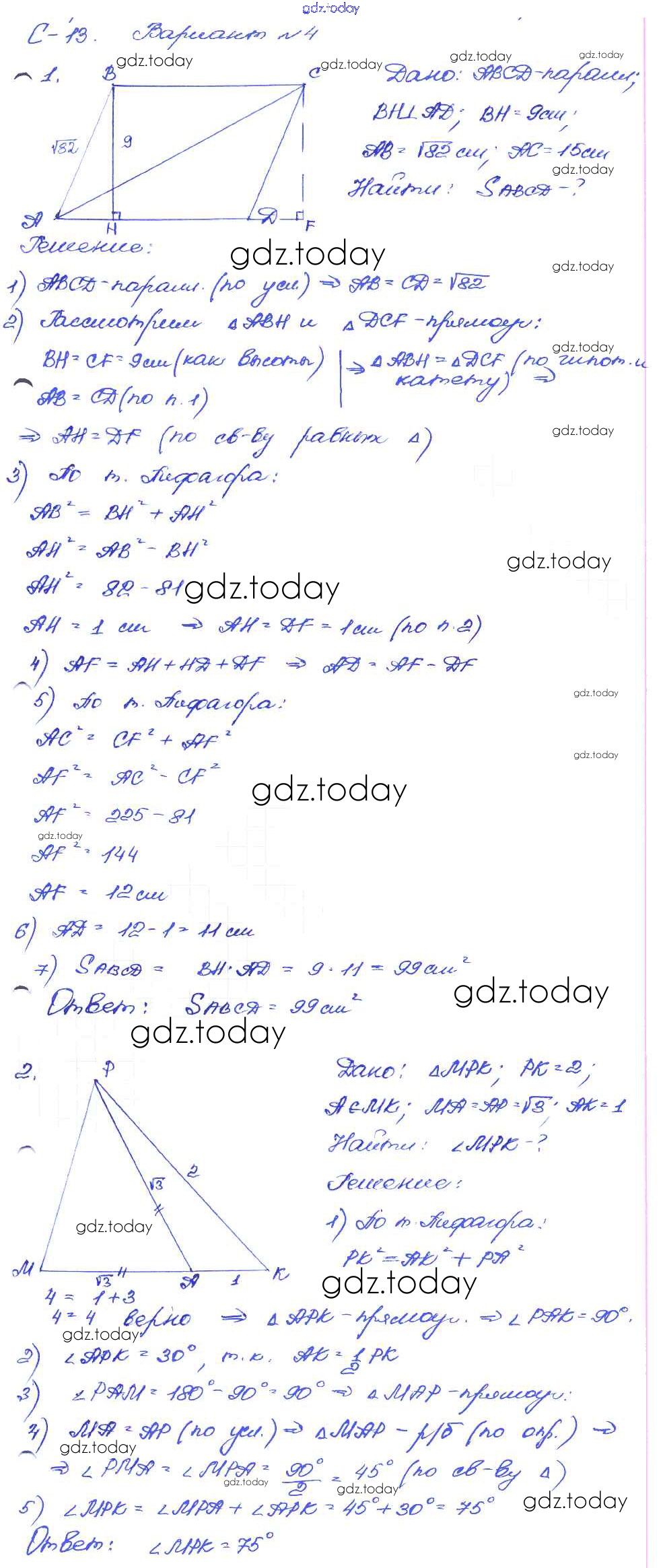 На страницах сайта gdz.today вы найдете учебный и вспомогательный материал, направленный на улучшения знаний школьной программы. ГДЗ - онлайн мир знаний СР №13. Теорема Пифагора Решение к самостоятельным работам вариант-4 Дидактическим материалам по Геометрии для 8 класса Зив, Мейлер Просвещение 2016