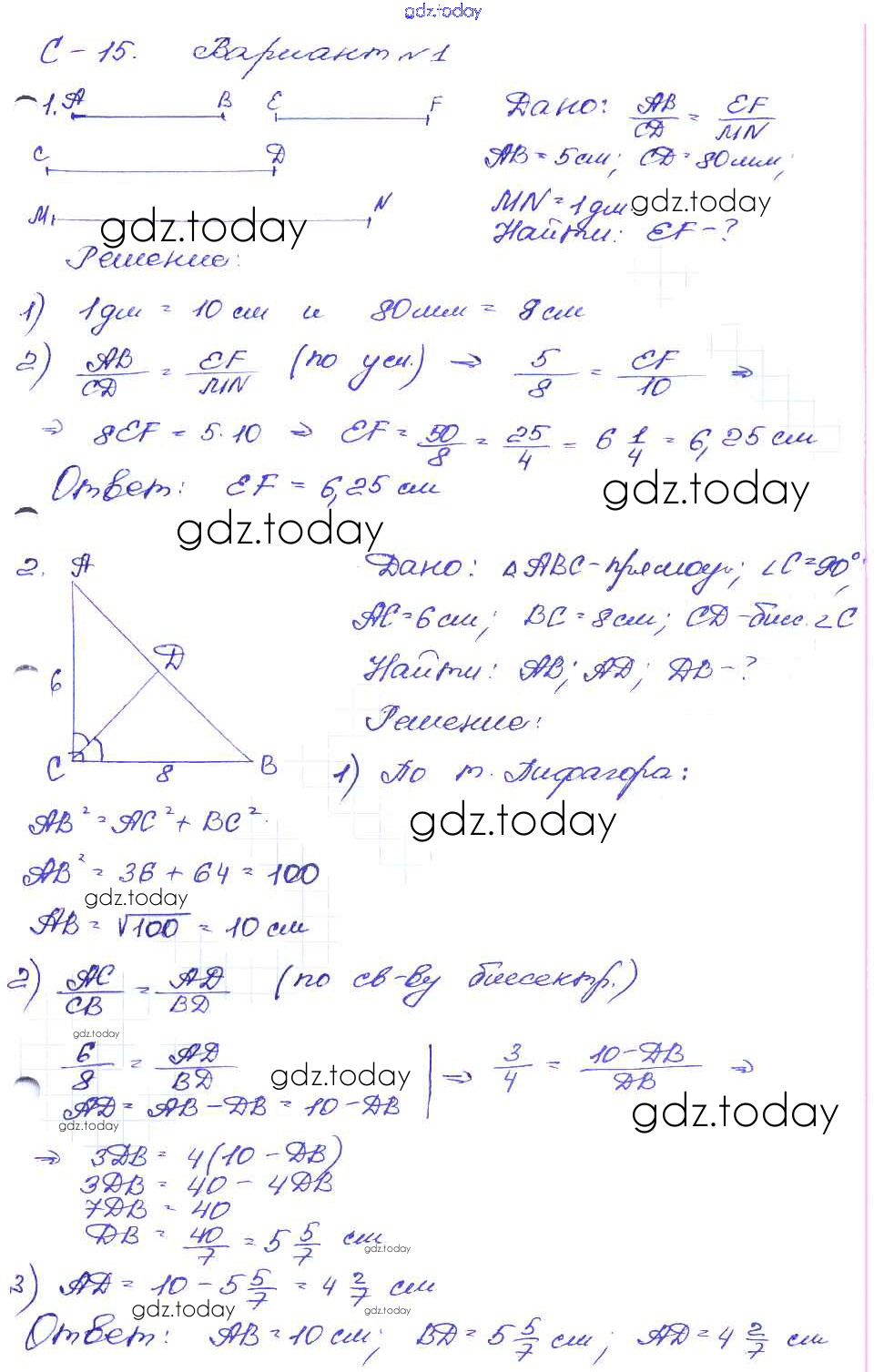 На страницах сайта gdz.today вы найдете учебный и вспомогательный материал, направленный на улучшения знаний школьной программы. ГДЗ - онлайн мир знаний СР №15. Пропорциональные отрезки Решение к самостоятельным работам вариант-1 Дидактическим материалам по Геометрии для 8 класса Зив, Мейлер Просвещение 2016