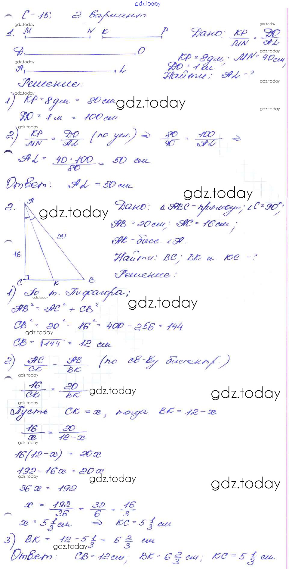 На страницах сайта gdz.today вы найдете учебный и вспомогательный материал, направленный на улучшения знаний школьной программы. ГДЗ - онлайн мир знаний СР №15. Пропорциональные отрезки Решение к самостоятельным работам вариант-2 Дидактическим материалам по Геометрии для 8 класса Зив, Мейлер Просвещение 2016