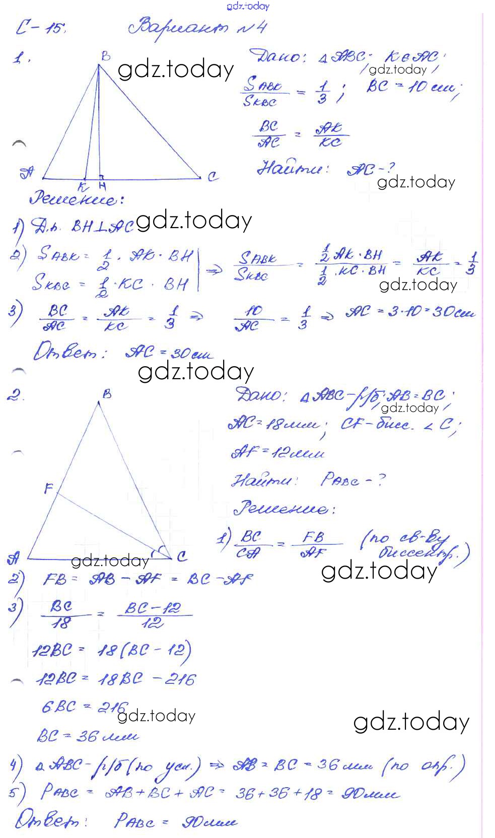 На страницах сайта gdz.today вы найдете учебный и вспомогательный материал, направленный на улучшения знаний школьной программы. ГДЗ - онлайн мир знаний СР №15. Пропорциональные отрезки Решение к самостоятельным работам вариант-4 Дидактическим материалам по Геометрии для 8 класса Зив, Мейлер Просвещение 2016