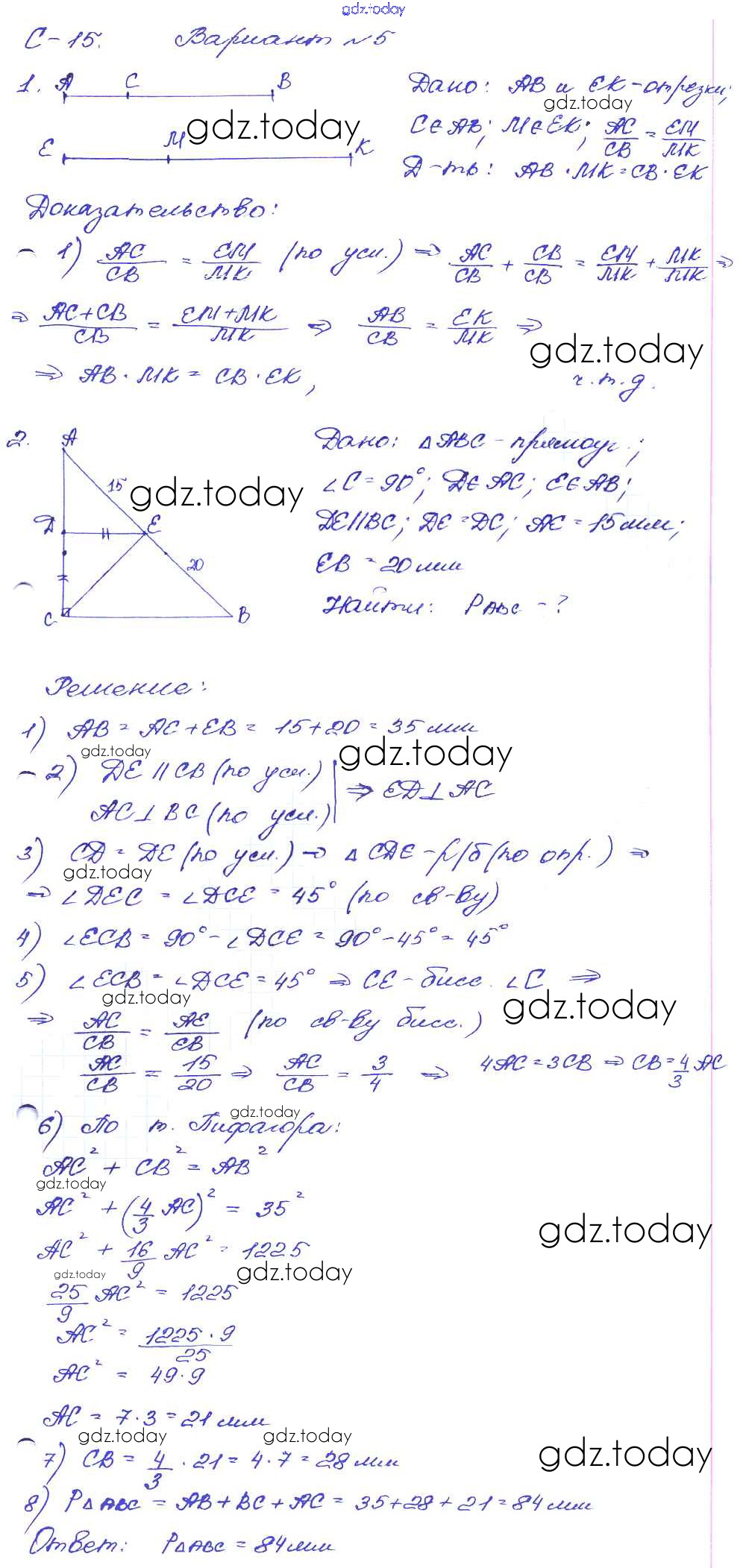 На страницах сайта gdz.today вы найдете учебный и вспомогательный материал, направленный на улучшения знаний школьной программы. ГДЗ - онлайн мир знаний СР №15. Пропорциональные отрезки Решение к самостоятельным работам вариант-5 Дидактическим материалам по Геометрии для 8 класса Зив, Мейлер Просвещение 2016
