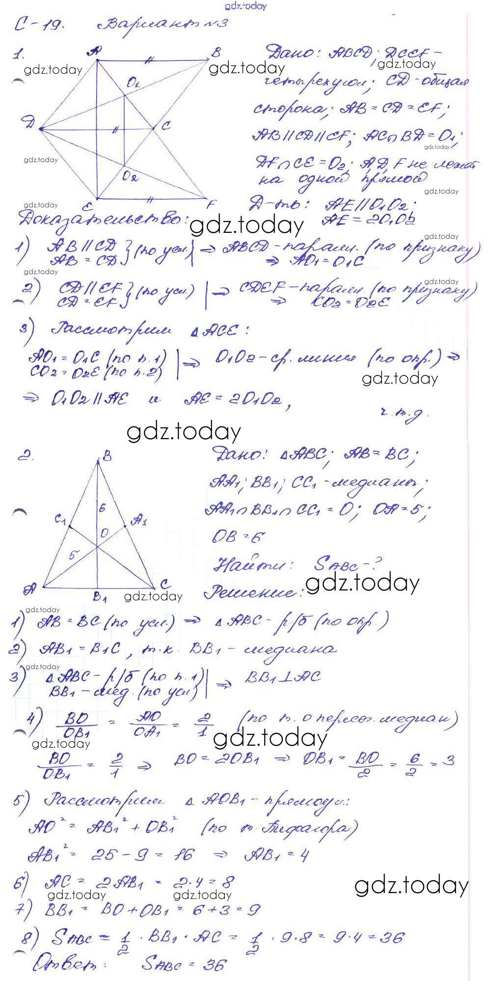 На страницах сайта gdz.today вы найдете учебный и вспомогательный материал, направленный на улучшения знаний школьной программы. ГДЗ - онлайн мир знаний СР №19. Средняя линия треугольника. Свойства медиан Решение к самостоятельным работам вариант-3 Дидактическим материалам по Геометрии для 8 класса Зив, Мейлер Просвещение 2016