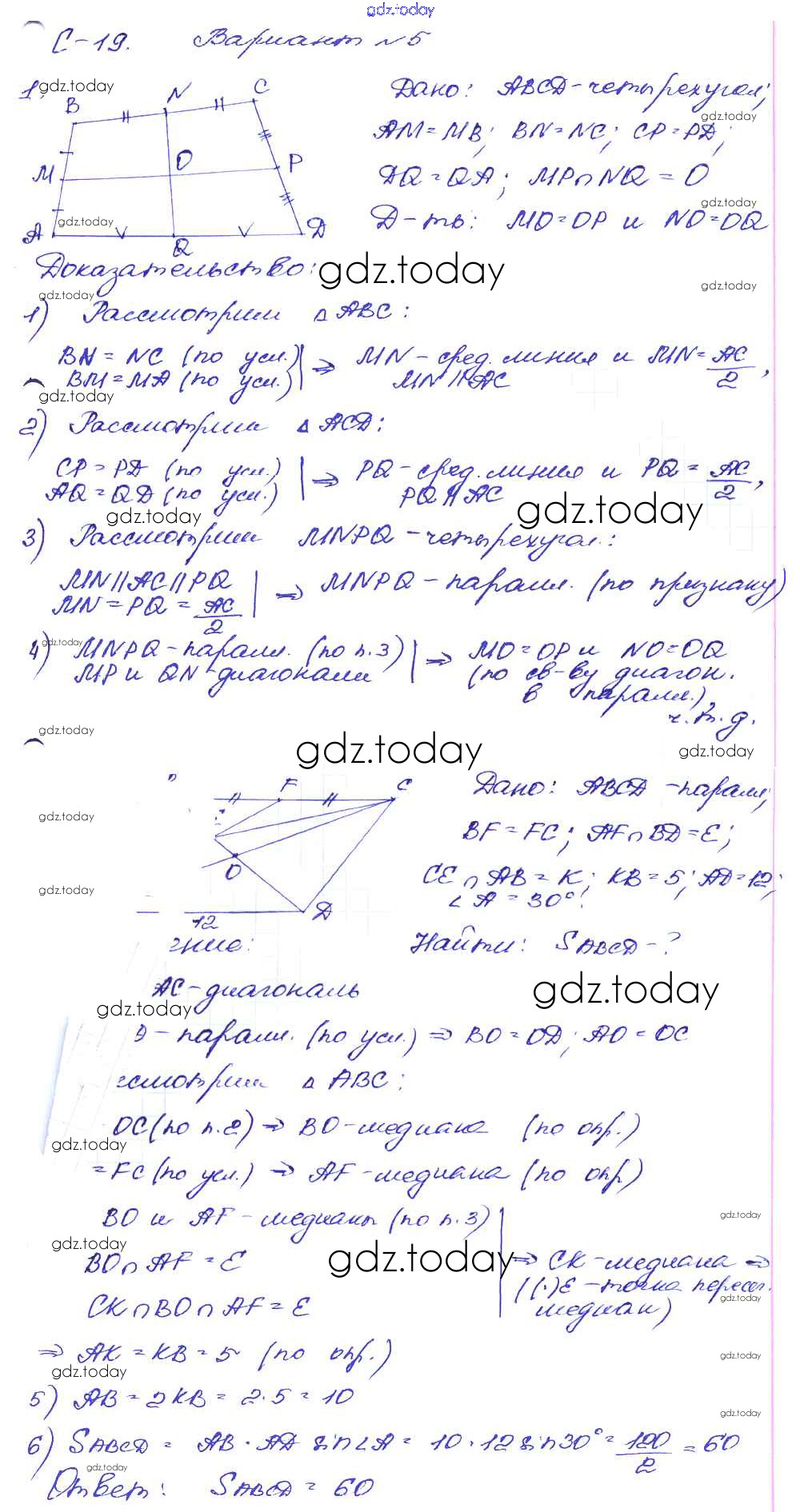 На страницах сайта gdz.today вы найдете учебный и вспомогательный материал, направленный на улучшения знаний школьной программы. ГДЗ - онлайн мир знаний СР №19. Средняя линия треугольника. Свойства медиан Решение к самостоятельным работам вариант-5 Дидактическим материалам по Геометрии для 8 класса Зив, Мейлер Просвещение 2016