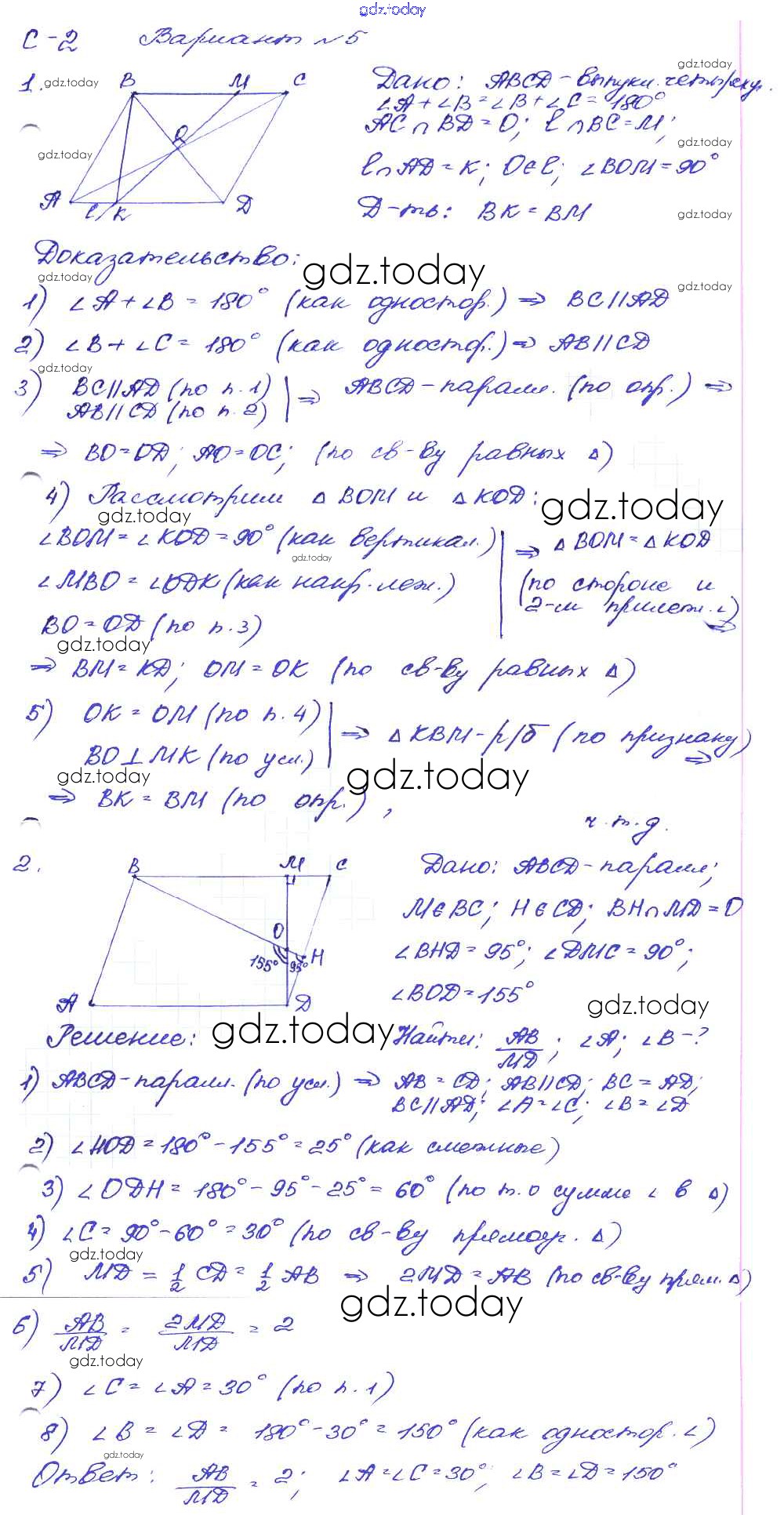 На страницах сайта gdz.today вы найдете учебный и вспомогательный материал, направленный на улучшения знаний школьной программы. ГДЗ - онлайн мир знаний СР №2. Параллелограмм и его свойства Решение к самостоятельным работам вариант-5 Дидактическим материалам по Геометрии для 8 класса Зив, Мейлер Просвещение 2016