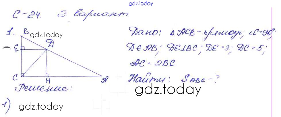 Ответы к СР №24. Подобие треугольников Решение к самостоятельным работам вариант-2 Дидактическим материалам по Геометрии для 8 класса Зив, Мейлер Просвещение 2016