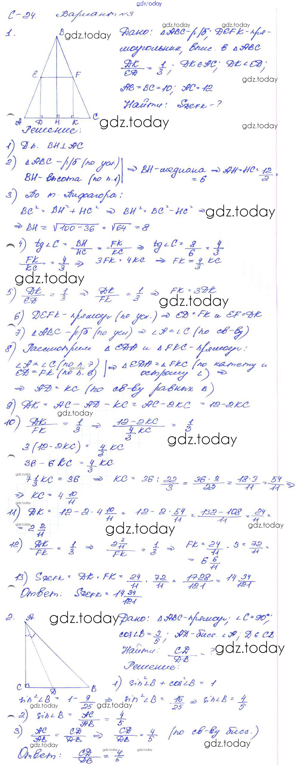 На страницах сайта gdz.today вы найдете учебный и вспомогательный материал, направленный на улучшения знаний школьной программы. ГДЗ - онлайн мир знаний СР №24. Подобие треугольников Решение к самостоятельным работам вариант-3 Дидактическим материалам по Геометрии для 8 класса Зив, Мейлер Просвещение 2016