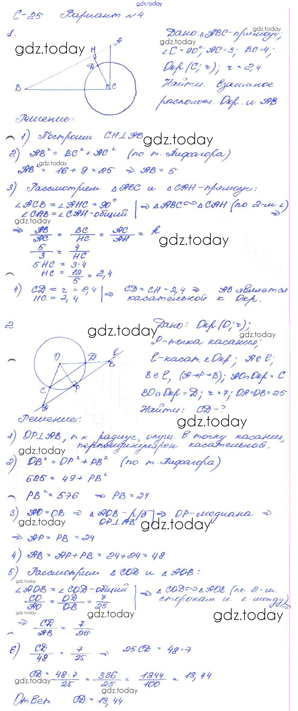На страницах сайта gdz.today вы найдете учебный и вспомогательный материал, направленный на улучшения знаний школьной программы. ГДЗ - онлайн мир знаний СР №25. Взаимное расположение прямой и окружности Решение к самостоятельным работам вариант-4 Дидактическим материалам по Геометрии для 8 класса Зив, Мейлер Просвещение 2016