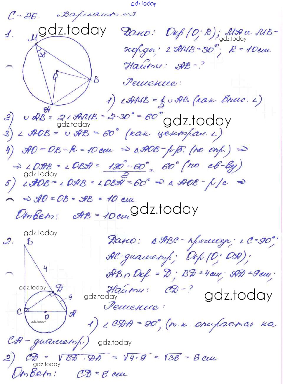 На страницах сайта gdz.today вы найдете учебный и вспомогательный материал, направленный на улучшения знаний школьной программы. ГДЗ - онлайн мир знаний СР №26. Теорема о вписанном угле Решение к самостоятельным работам вариант-3 Дидактическим материалам по Геометрии для 8 класса Зив, Мейлер Просвещение 2016