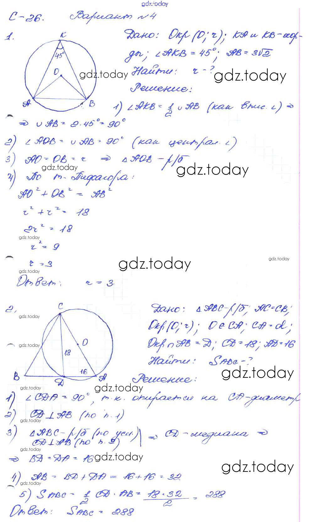 На страницах сайта gdz.today вы найдете учебный и вспомогательный материал, направленный на улучшения знаний школьной программы. ГДЗ - онлайн мир знаний СР №26. Теорема о вписанном угле Решение к самостоятельным работам вариант-4 Дидактическим материалам по Геометрии для 8 класса Зив, Мейлер Просвещение 2016
